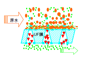 在超濾膜過(guò)濾過(guò)程中,超濾膜污染是一個(gè)經(jīng)常遇到的問(wèn)題。所謂污染是指原水中的微粒、膠體粒子、有機(jī)物和微生物等大分子溶質(zhì)與超濾膜產(chǎn)生物理化學(xué)作用或機(jī)械作用而引起在超濾膜表面或膜孔內(nèi)吸附、沉淀,使超濾膜孔徑變小或堵塞,導(dǎo)致超濾膜的透水性能下降的現(xiàn)象。