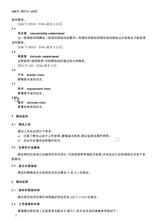 《電去離子膜堆測(cè)試方法》GB/T 38514-2020于近日發(fā)布,2021年2月1日起施行。