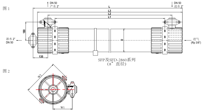 SFP-2860膜組件適用于流量在 50 m3/hr(220 gpm)以上的系統(tǒng)。